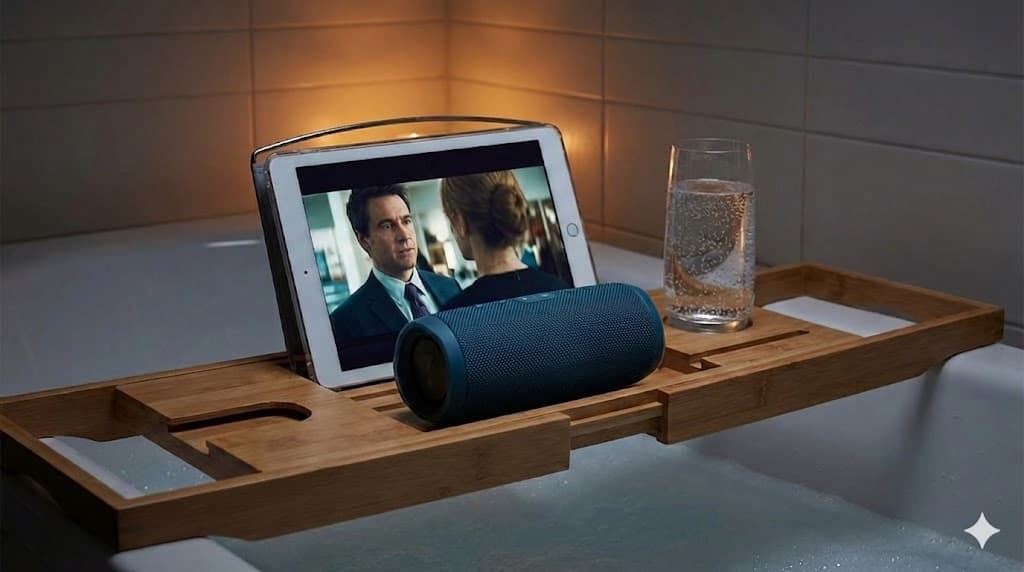 - 動画鑑賞(Netflix / YouTube)お風呂の反響音は、意外にも臨場感を高めてくれます。防水のタブレットやスマホをスタンドに立てかけ、好きな映画やYouTubeチャンネルを観る。これだけで、15分はあっという間に過ぎ去ります。