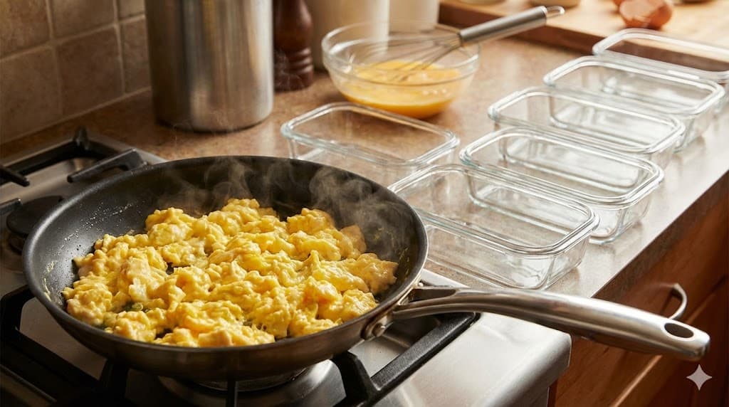 - フライパンで「炒り卵」を作る。(※厚焼き玉子は冷凍すると水分が抜け、食感が著しく劣化するため不向きです)