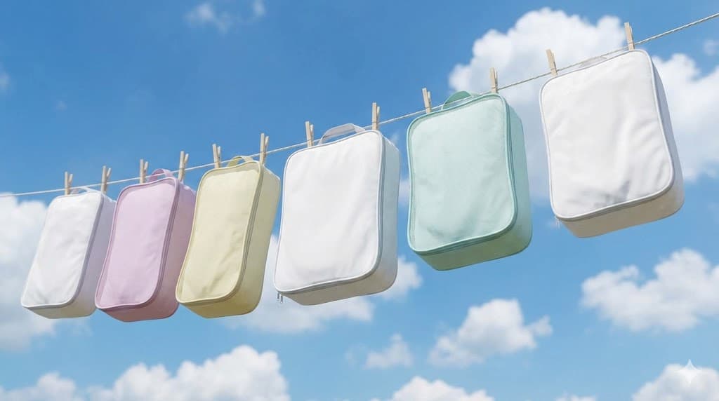 最新の圧縮ポーチは、丈夫なナイロンやポリエステル素材で作られており、洗濯機での丸洗いに対応しているものが増えています。
