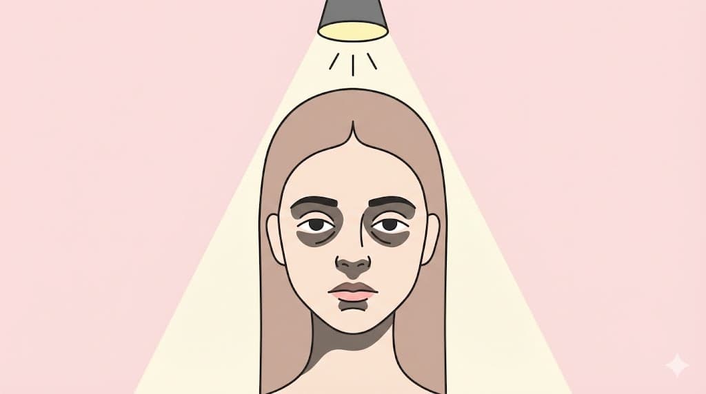 これらの場所に、くっきりとした「影」が落ちてしまいます。この影のせいで、実際よりもクマが濃く見えたり、顔の凹凸が強調されて老けて見えたりするのです。