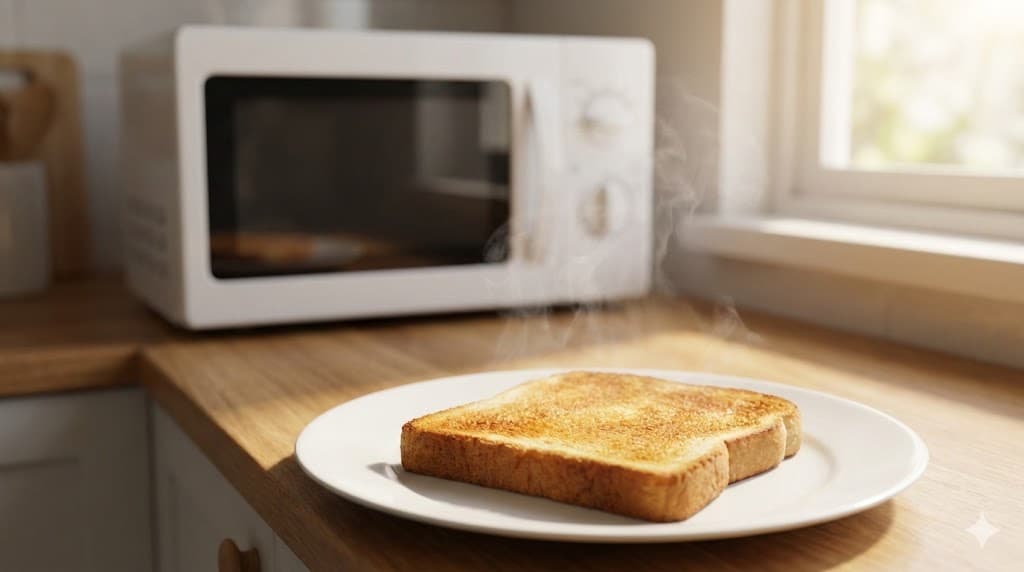 【裏ワザ】電子レンジだけで食パンをカリカリにする方法!トースターなしでも「べちゃっ」とさせないコツ