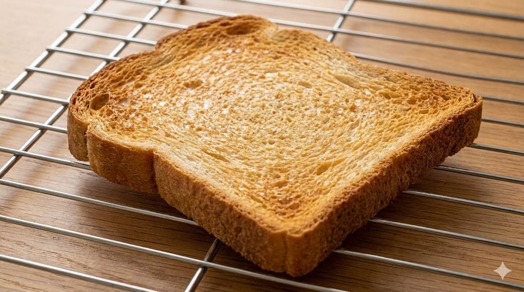 水分が飛びすぎるとすぐに硬くなるため、「もう少しかな?」と思う手前で止めるのがコツです。薄切りのパン(8枚切りなど)の方が、よりサクサク感を出しやすいですよ。
