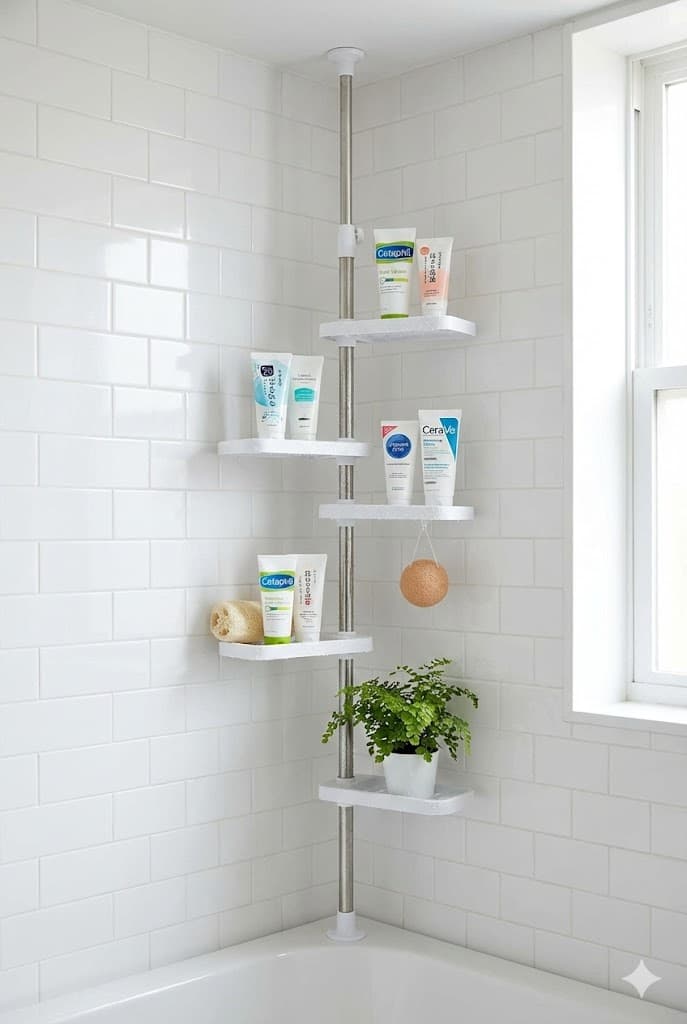 天井と床(または浴槽の縁)で突っ張るタイプのラックなら、収納タワーが作れます。