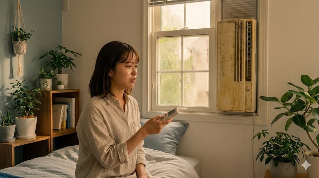 「カビ臭い風を我慢して使う」か「自腹で高いクリーニング代を払う」か…そんな理不尽な悩みを、窓用エアコンは一発で解決します。